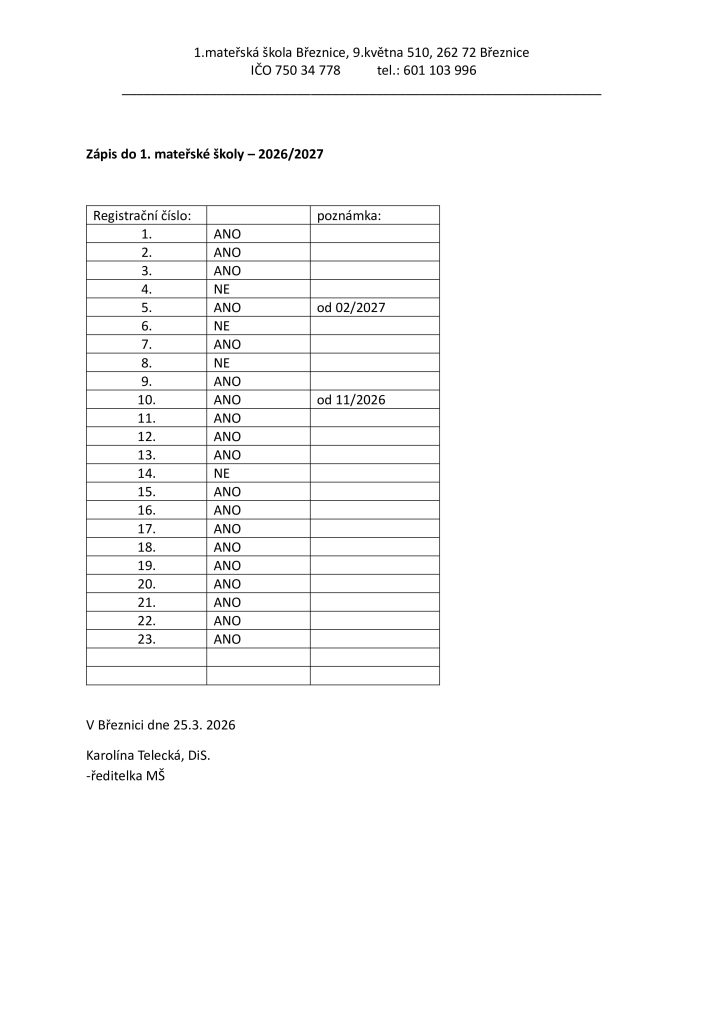 Mateřská škola je samostatným zařízením s právní subjektivitou od 1. 1. 2003.